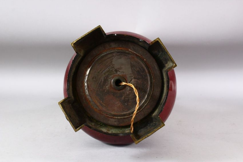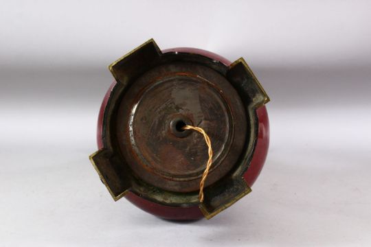 A CHINESE SANG DE BOEUF VASE / LAMP, with ormolu mounts, 51cm high.