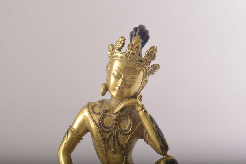 A FINE CHINESE OR TIBETAN GILT BRONZE BUDDHA, seated in a contemplative posture, 20cm high.