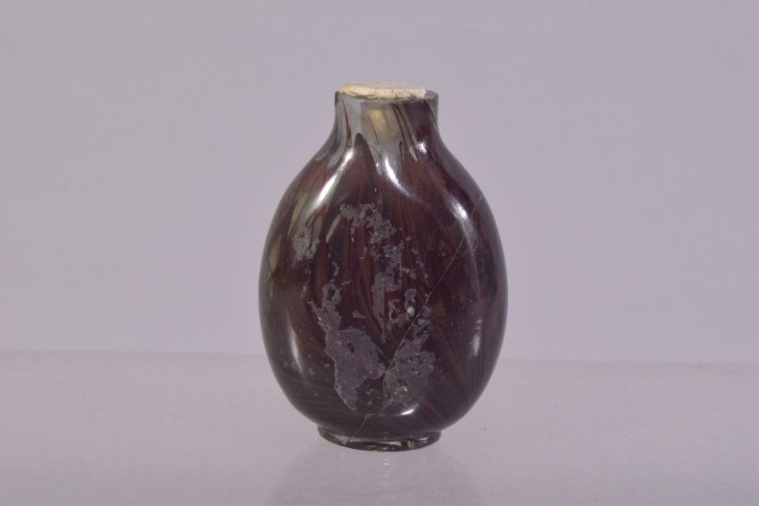 A CHINESE MOTTLED GLASS SNUFF BOTTLE, 5.5cm.