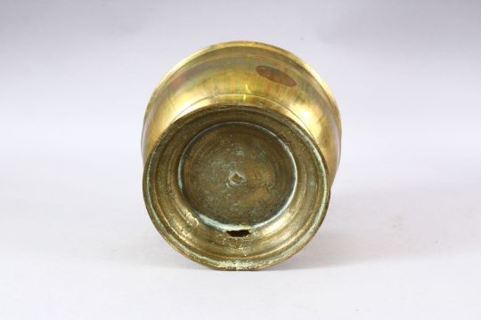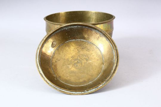 AN INDIAN BRASS LIDDED CIRCULAR POT & COVER - 21cm