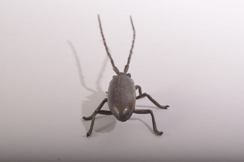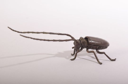 A JAPANESE BRONZE MODEL OF A LONG HORNED BEETLE - articulated with an opening back 14.5cm