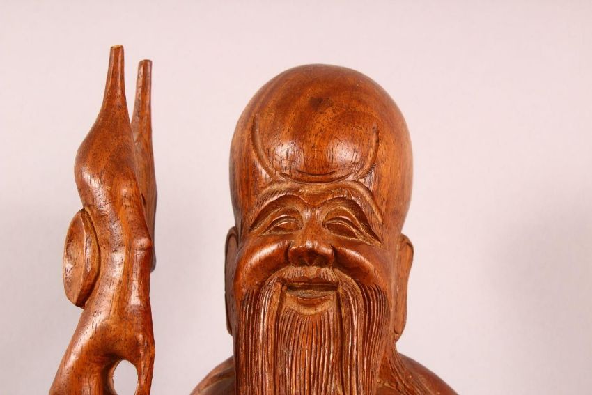 A CHINESE CARVED HARDWOOD FIGURE OF SHOU LAO - 47cm high