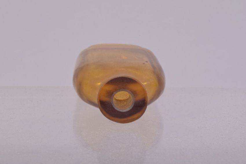 A CHINESE AMBER COLOURED GLASS SNUFF BOTTLE, 6.5cm.