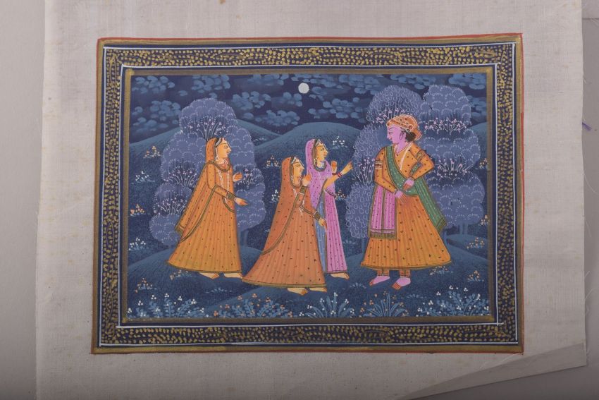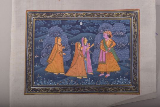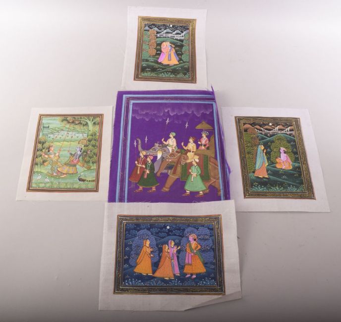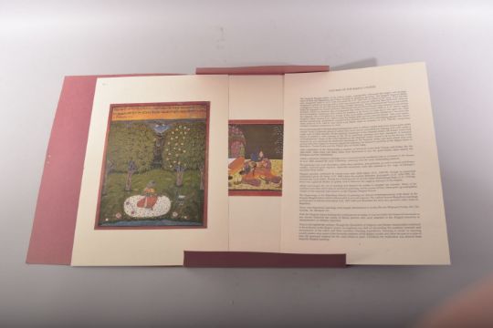 FIVE INDIAN PAINTINGS ON SILK, together with associated portfolio; Ateliers of the Rajput Courts, Lalit Kala Akademi (6).