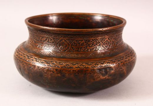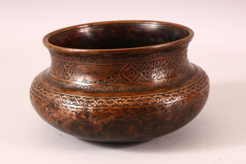 A FINE 17TH / 18TH CENTURY PERSIAN SAFAVID TINNED COPPER BOWL - 20cm.