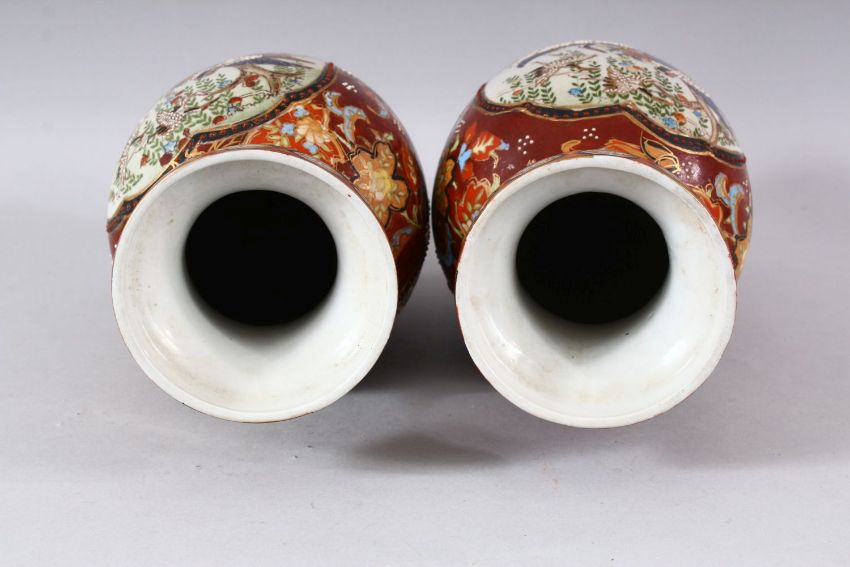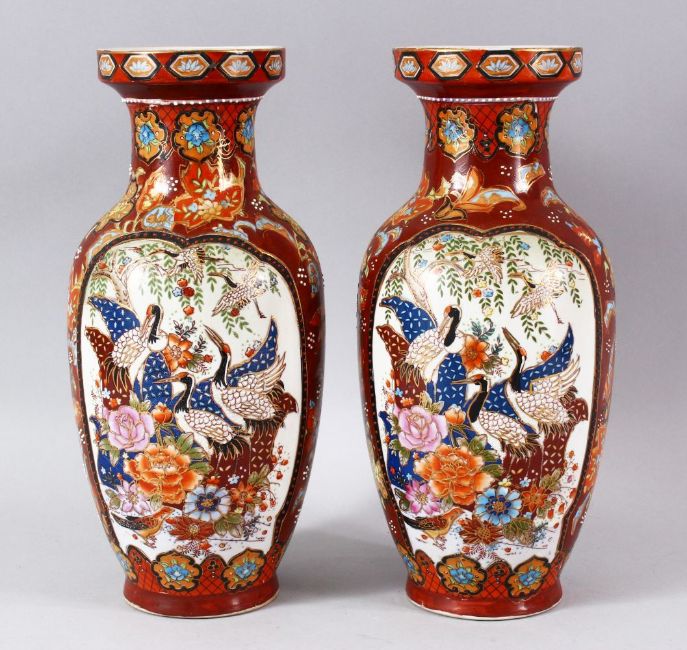 A PAIR OF JAPANESE IMARI STYLE PORCELAIN VASES - with flora and birds - 31cm
