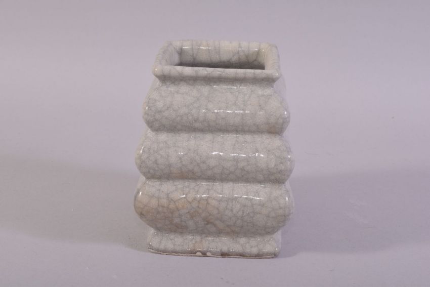 A CHINESE GE STYLE SQUARE FORM BRUSH POT, 11.5cm high.