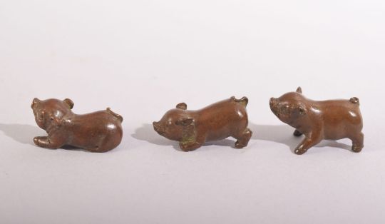 THREE JAPANESE BRONZE MODEL PIGS - THREE LITTLE PIGS - 2.5cm