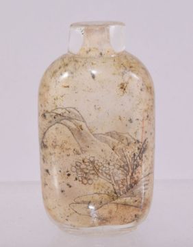 A CHINESE REVERSE PAINTED GLASS SNUFF BOTTLE, 6cm high.