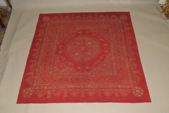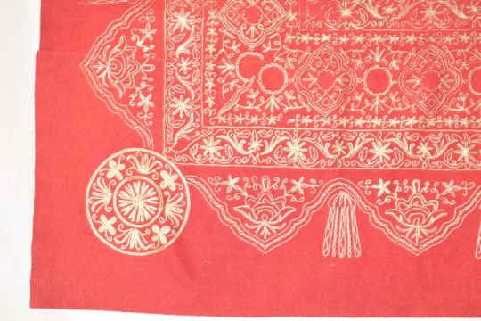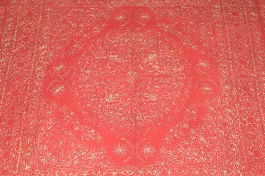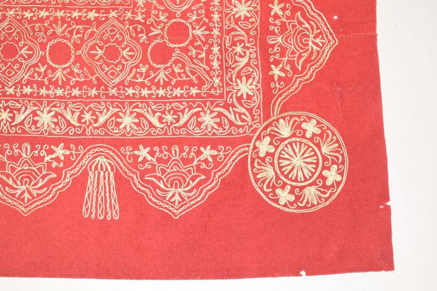 A GOOD TURKISH OTTOMAN EMBROIDERED TEXTILE, embroidered in gold colour thread with decorative foliate motifs.