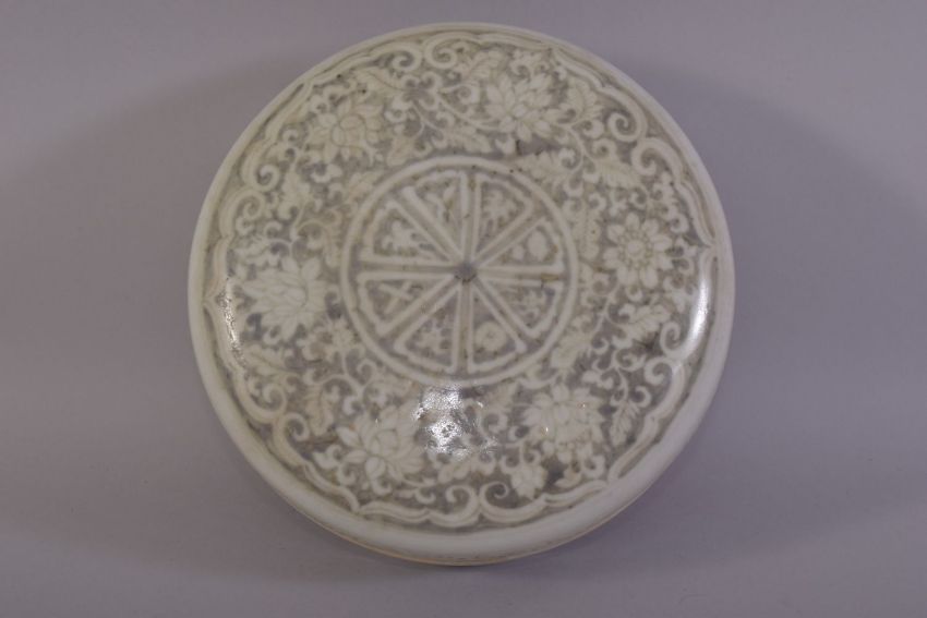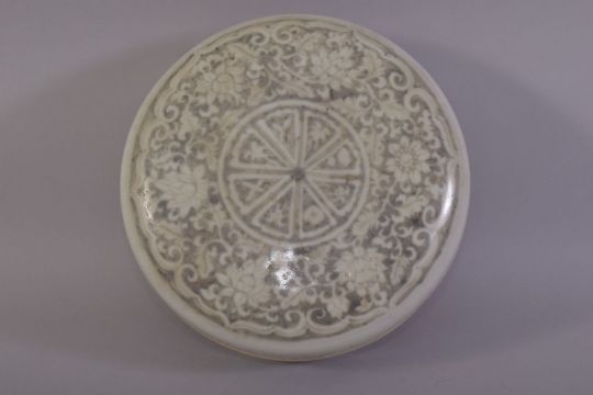 A LARGE CHINESE YUAN STYLE CIRCULAR BOX AND COVER, decorated floral motifs, 22cm diameter.