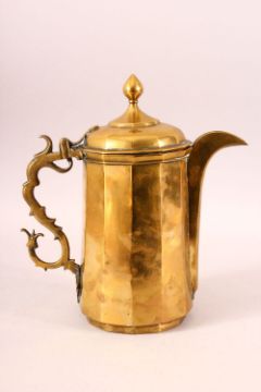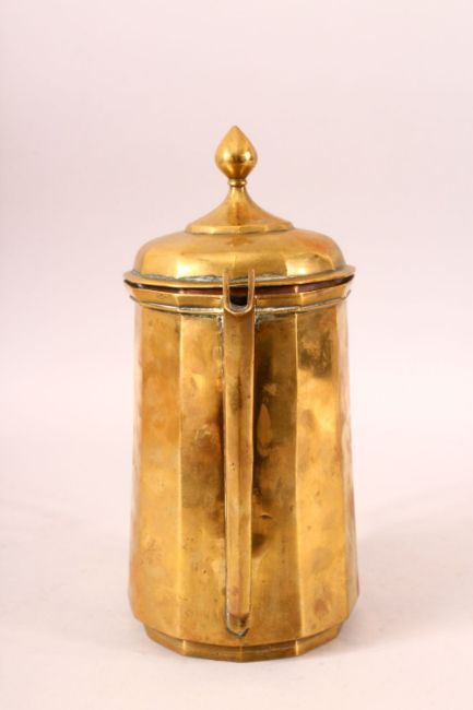 A LARGE 19TH CENTURY BRASS COFFEE POT, with hinged lid, 29cm high.
