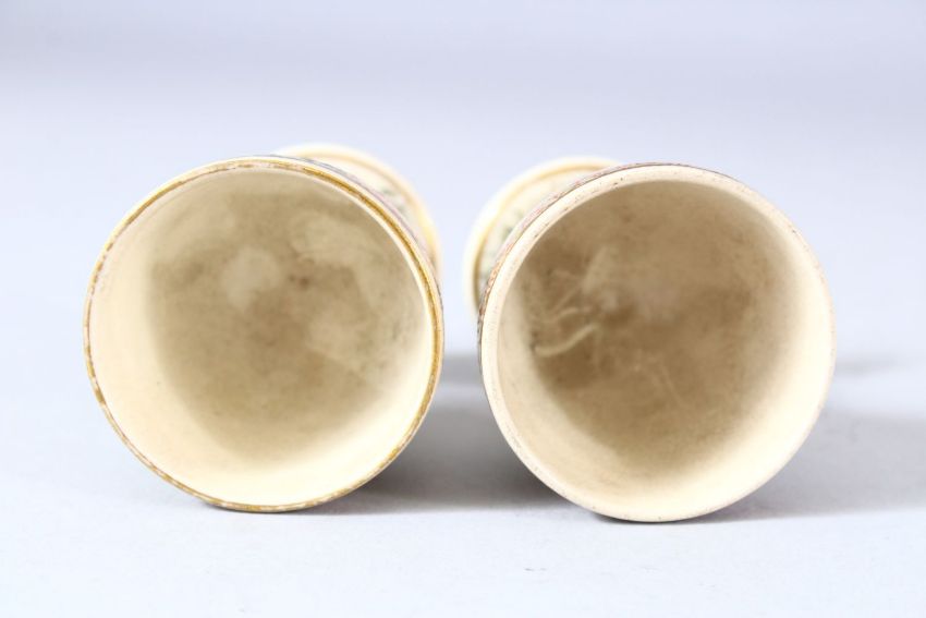 A PAIR OF SATSUMA PORCELAIN EGG CUPS, 6.5cm.