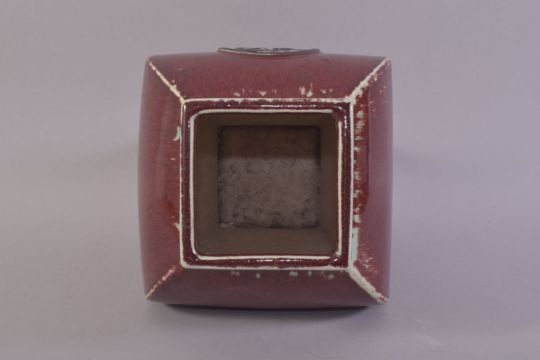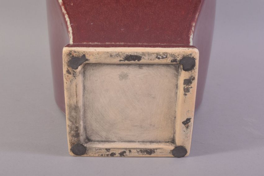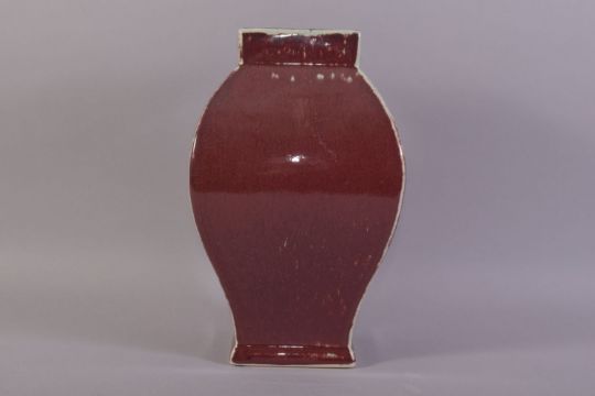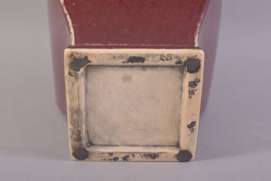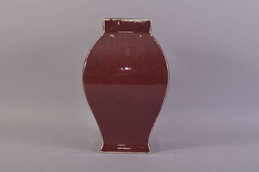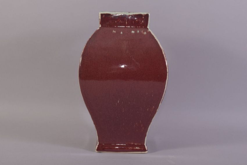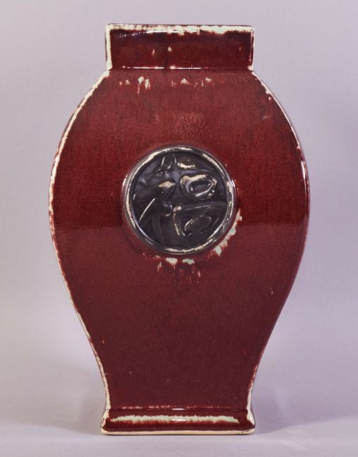 A CHINESE SANG DE BOEUF VASE, with calligraphic roundel to one side, 29cm high.