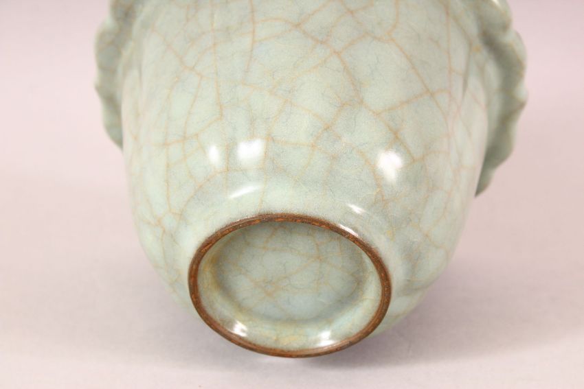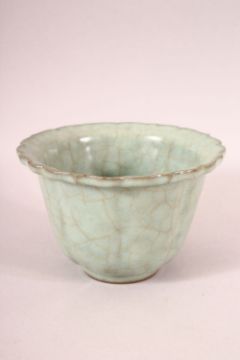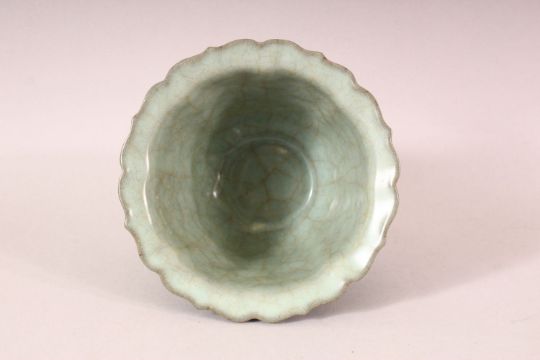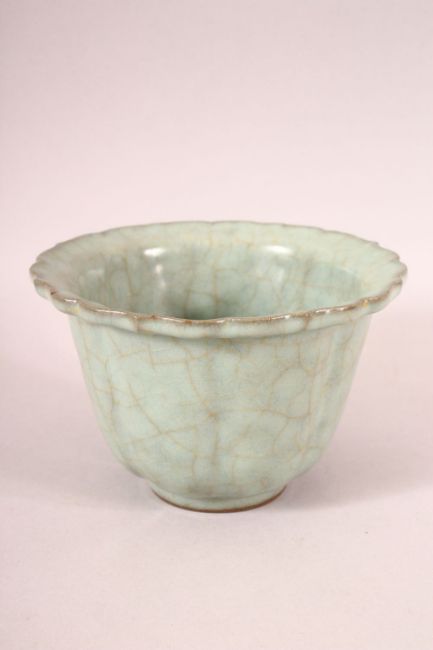 A CHINESE CRACKLE GLAZE CELEDON BOWL, 15cm diameter.
