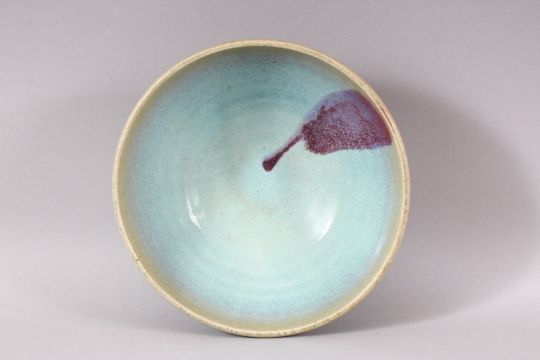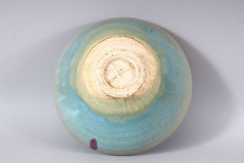 A CHINESE JUNYAO GLAZED POTTERY BOWL, 23.5cm diameter.