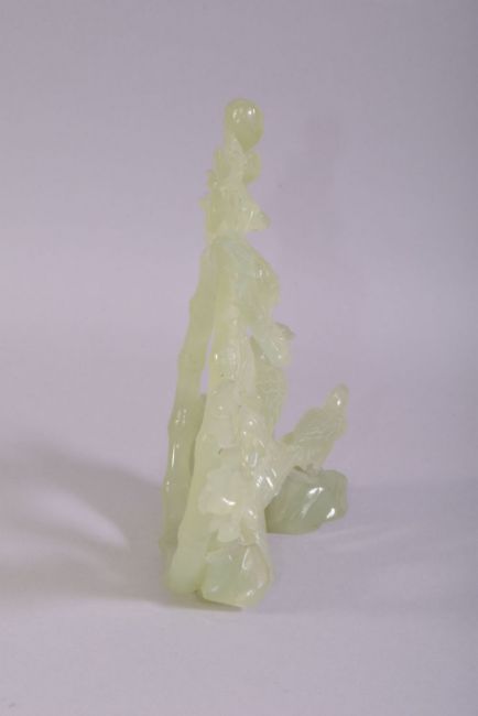 A CHINESE JADE CARVING OF PHEASANTS and blossoms, 16cm high, 17cm wide.