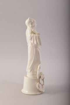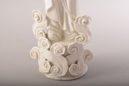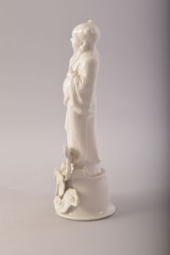 AN EARLY 20TH CENTURY BLANC DE CHINE FIGURE OF A SAGE, 25.5cm high.