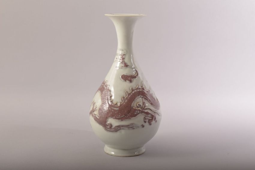 A CHINESE RED AND WHITE PORCELAIN DRAGON VASE, 25.5cm high.