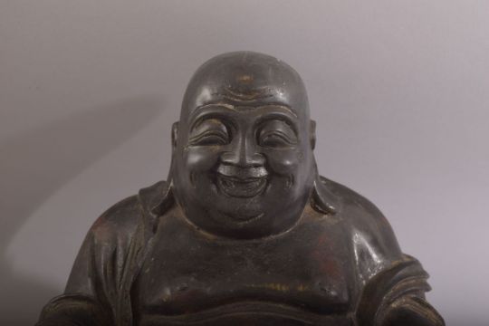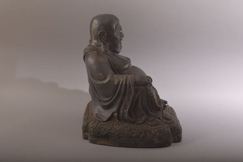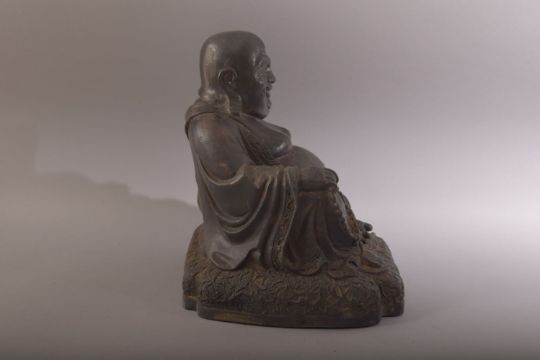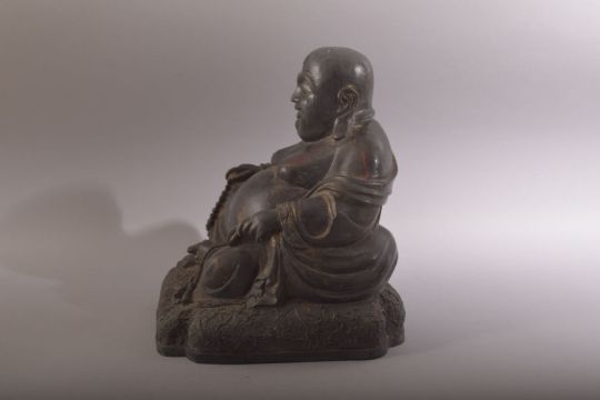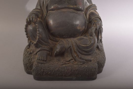A CHINESE BRONZE SEATED BUDDHA, with faint traces of red and gilt, 26.5cm high.