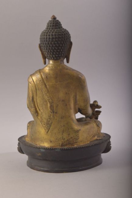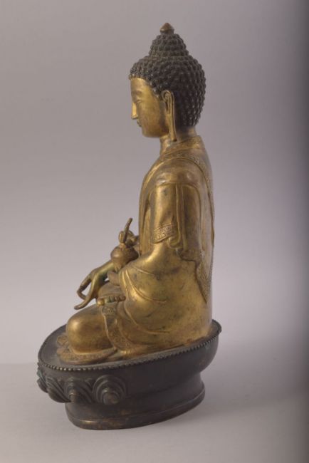 A GOOD LARGE GILT BRONZE SEATED THAI BUDDHA, 30cm high.