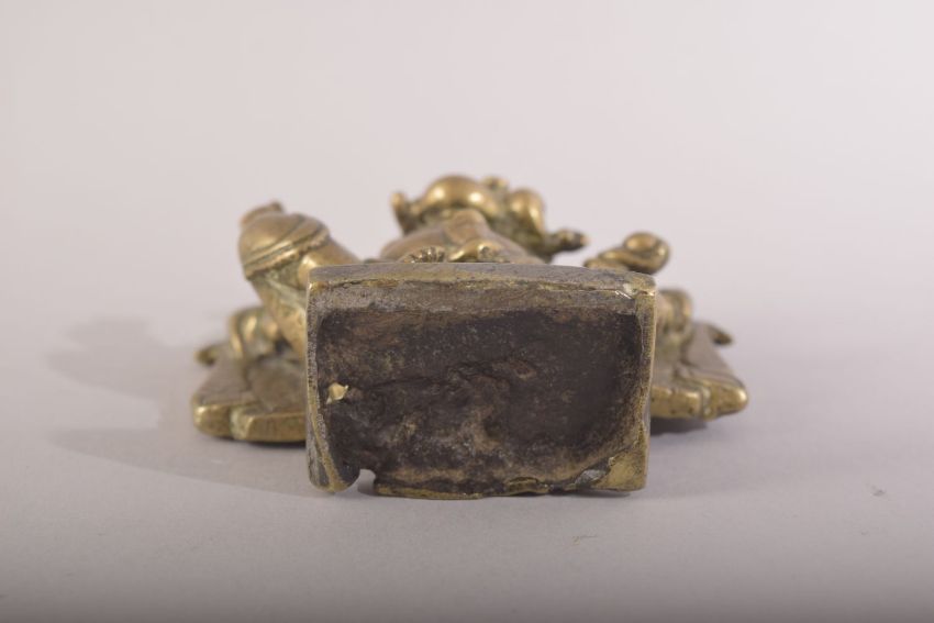 AN 18TH/19TH CENTURY INDIAN BRASS FIGURE OF GANESHA, 12.5cm high.