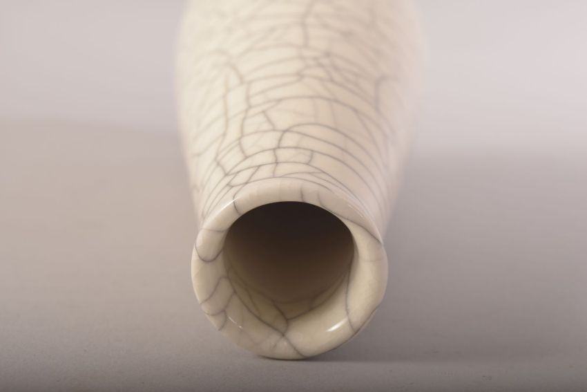 A PORCELAIN GILT DECORATED POT AND COVER, 12cm high, together with a chinese crackle glaze vase, 18.5cm high (2).