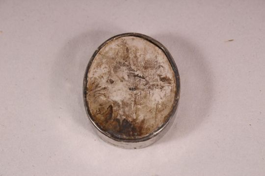 A SIKH SCHOOL OVAL MINIATURE PAINTING of The Golden Temple, Punjab, encased within a silver mount, 5cm x 4cm.