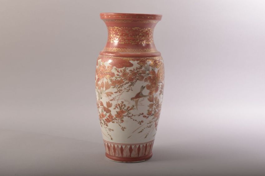 A JAPANESE KUTANI PORCELAIN VASE, painted with birds, native flora and gilt highlights, 30.5cm high.