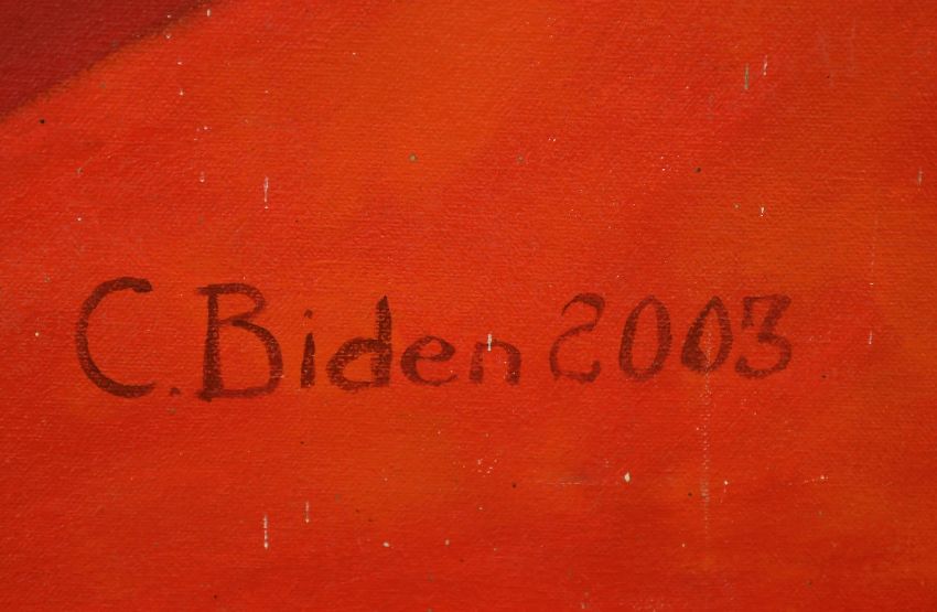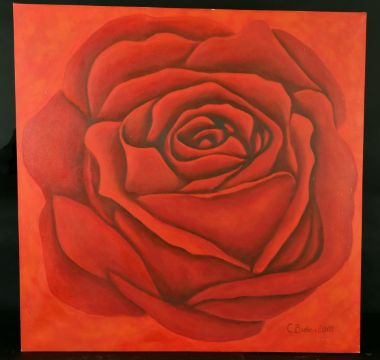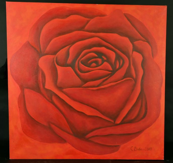 C. Biden, circa 2003, a still life study of a rose, oil on canvas, signed, 42.5" x 42.5", (unframed).