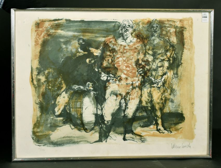 Claude Weisbruch (1927-2014), Figures and a drum, lithograph, signed and numbered 48/150 in pencil, 19" x 25".