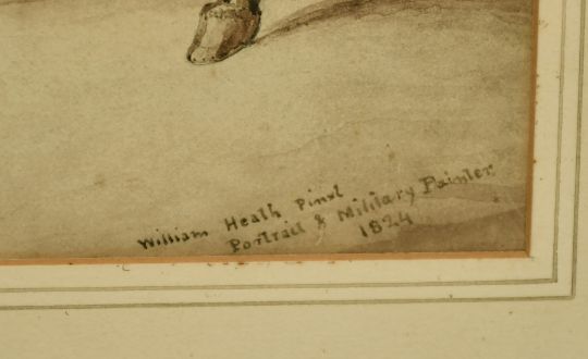 William Heath (1794-1840) British, a portrait of a mounted cavalry officer, watercolour, signed and inscribed 'William Heath Pinx, Portrait and Military Painter, 1824', 13" x 10".