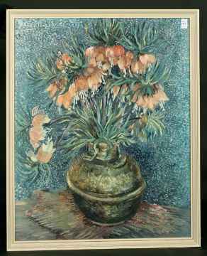 After Van Gogh, A still life of Fritillaries, coloured print, 29.5" x 24".