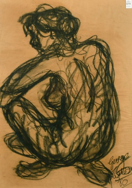 Georges Lister, Circa 1980, a charcoal study of a crouching female nude figure, signed and dated, 28" x 19.75".