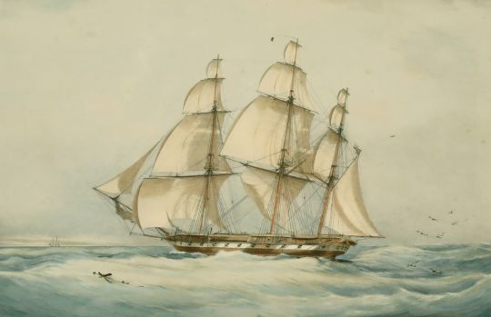 Day and Haghe after John Vernon, 'HMS Eurydice', 19th Century lithograph, 11" x 17" in a maple frame.