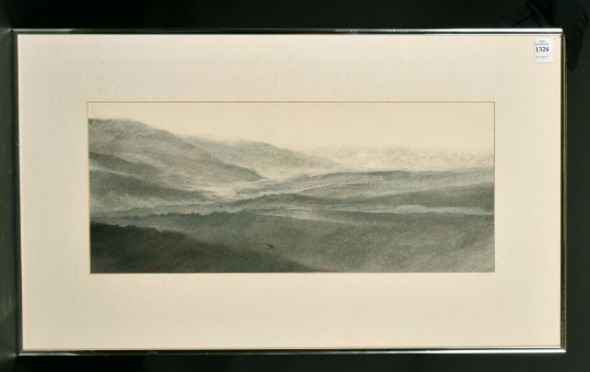 Vince Tutton (1944-2016) British, 'View from Lascole D'Elsa, Tuscany', circa 1988, charcoal and pencil, signed verso, 27" x 16".
