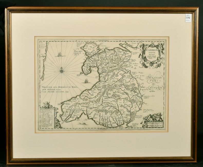 Cambriae typus, Auctore Humfredo Lhuydo, Jan Janssons, engraving, 17th Century, 14" x 19".