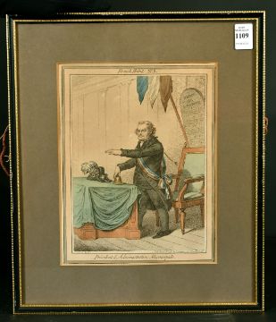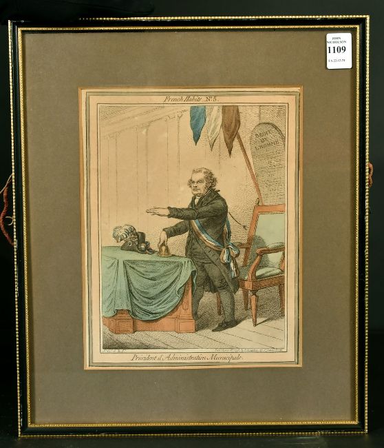 James Gillrary (1756-1815) British, A hand coloured etching, 'President d' Administration Municipal', trade label verso, 9.75" x 7.5". Provenance: Folio Fine Art Ltd.