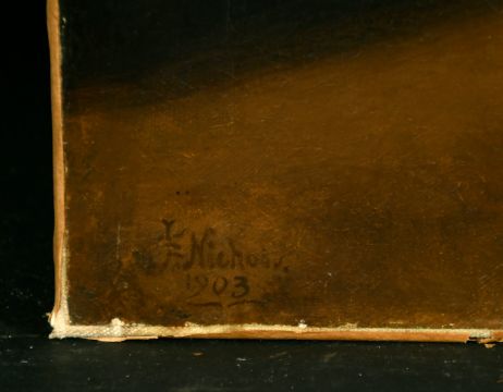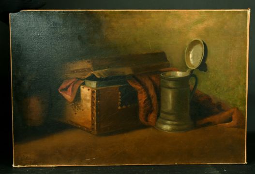 English School, circa 1903, a still life of a pewter tankard and other objects, oil on canvas, indistinctly signed, 16" x 20", unframed.