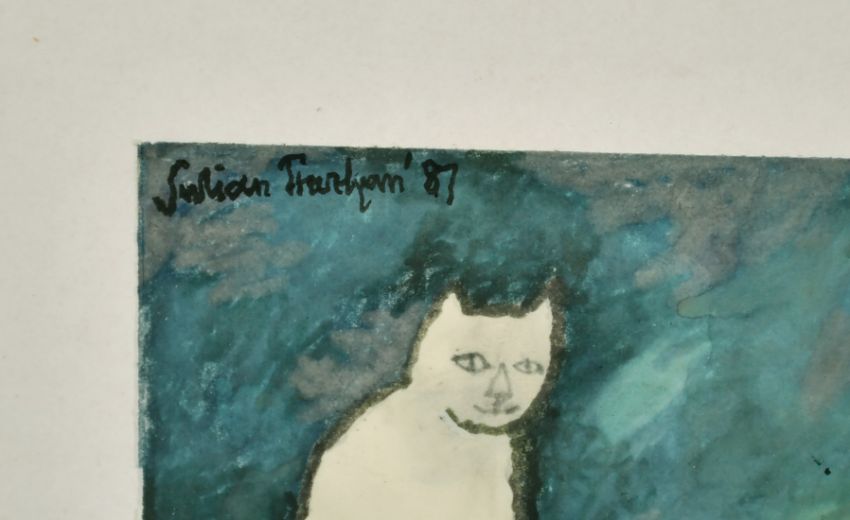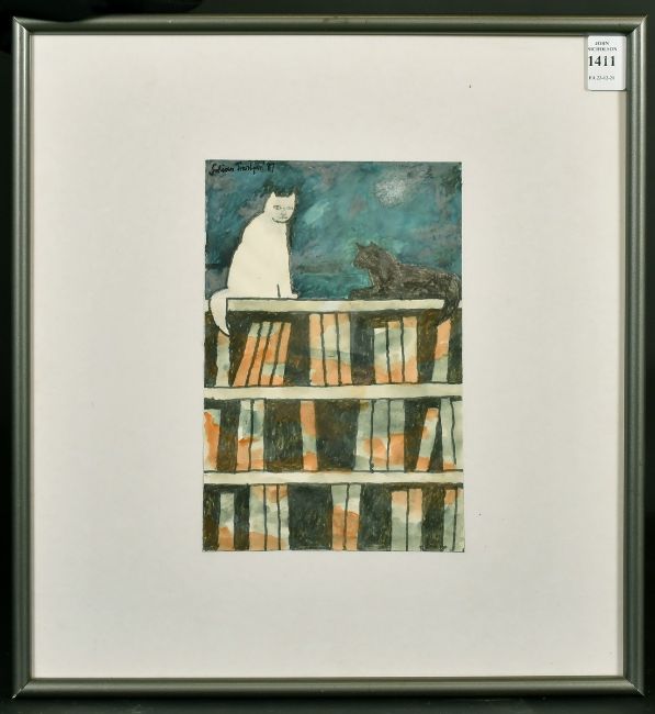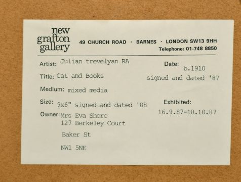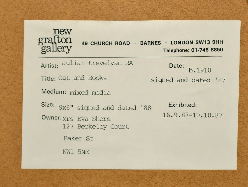 Julian Trevelyan (1910-1988) British, 'Cat and Books', mixed media, signed and dated 1987, 9" x 6", exhibited at the New Grafton Gallery in 1987.