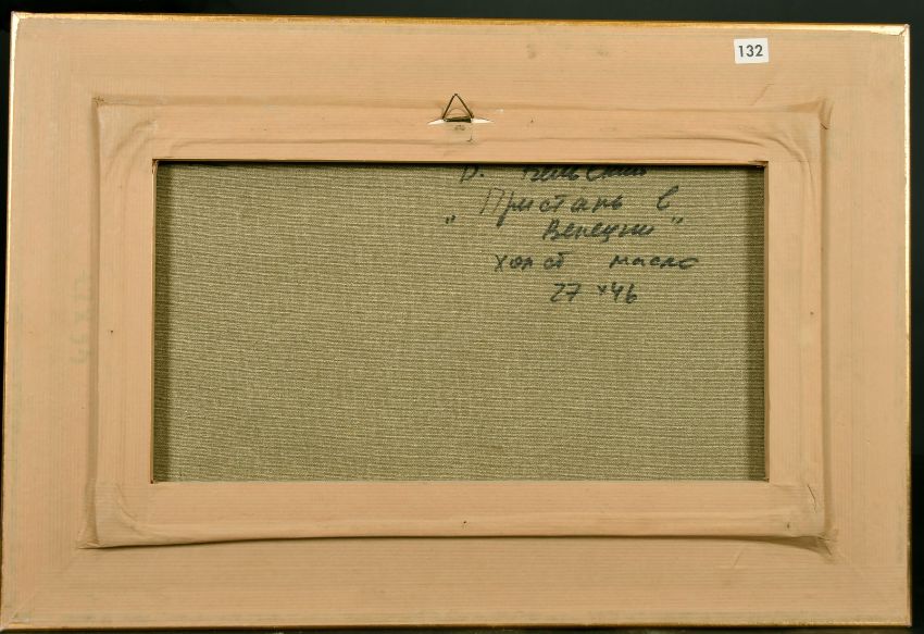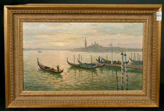 Vladimir Belskiy (b.1949) Russian, a view of Venice with figures by gondoliers in the foreground, oil on canvas, signed, 11" x 18".