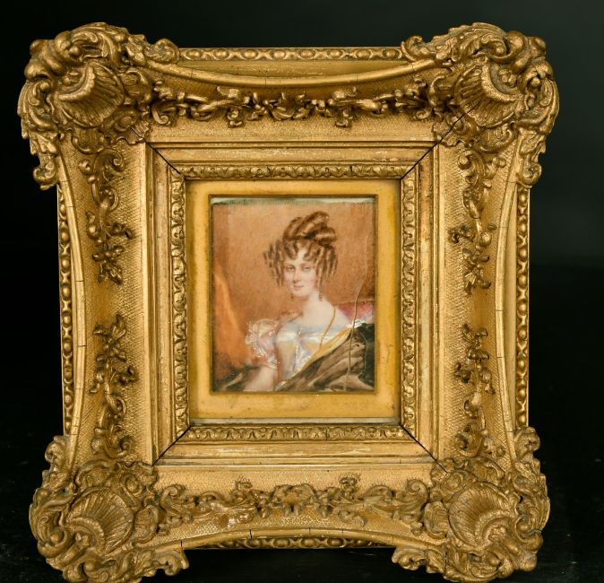 Early 19th Century, A pair of watercolour on ivory portraits of a lady and a gentleman, in fine gilt composition frames, 4" x 3.5", (2).