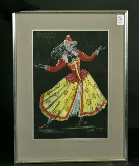 Elizabeth Agombar (20th Century), 'Design for a Ballet Based on the Elizabethan Period', mixed media, signed and dated '47, 13.5" x 9".