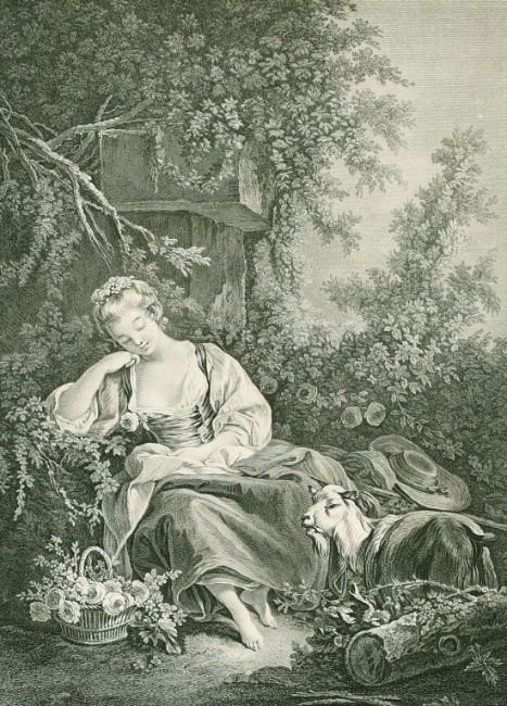 After Boucher, 'La Revevse', stipple engraving, 18" x 12.5", (unframed).