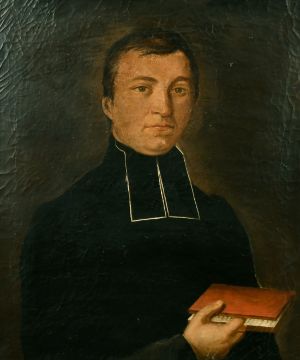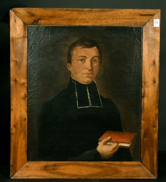 19th Century French School, A half-length portrait of a cleric, oil on canvas, 18.5" x 22.5", in a walnut frame.