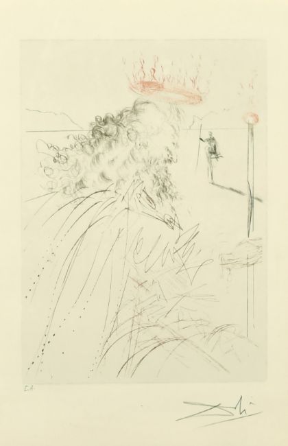 After Salvador Dali, 'King Leir', colour print, 10" x 7.25", in a carved wood frame.