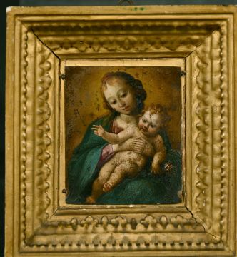 17th/18th Century Continental School, Madonna and child, oil on copper, 3.75" x 3".