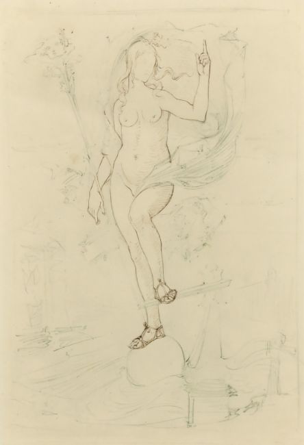 Circle of Leon Victor Solon, A sketch of a classical female figure, pencil and ink, 9.75" x 6.75".