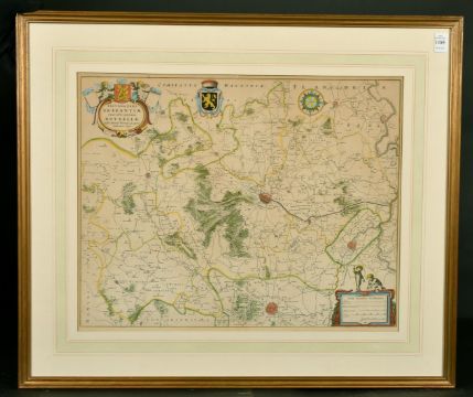 Secunda Pars Brabantiae cuius urbs primaria Bruxellae, by William Blaeu, 17th Century hand coloured engraving, 17" x 21".