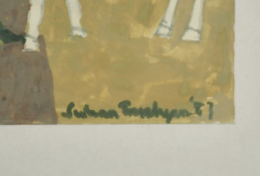 Julian Trevelyan (1910-1988) British, 'Two Grey Horses', mixed media, signed and dated 1987, 6" x 9", exhibited at the New Grafton Gallery in 1987.